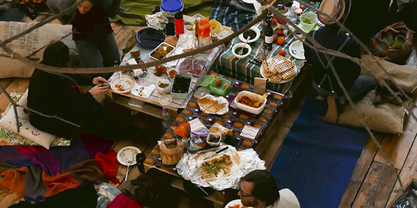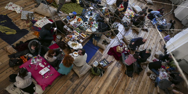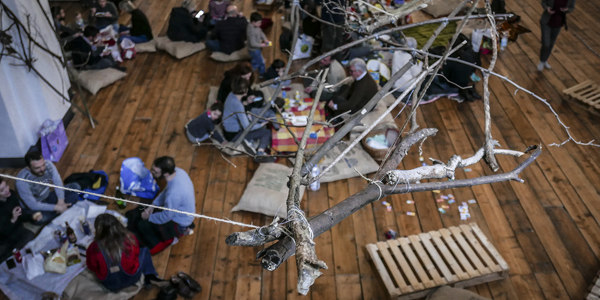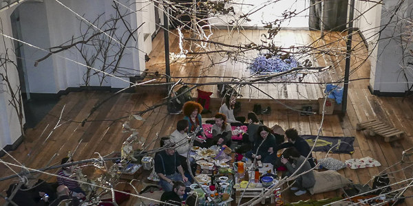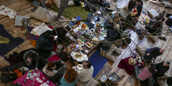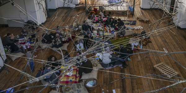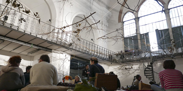 Un picnic al coperto all’interno dell’antica chiesa, per l’occasione trasformata in un bosco d’inverno.