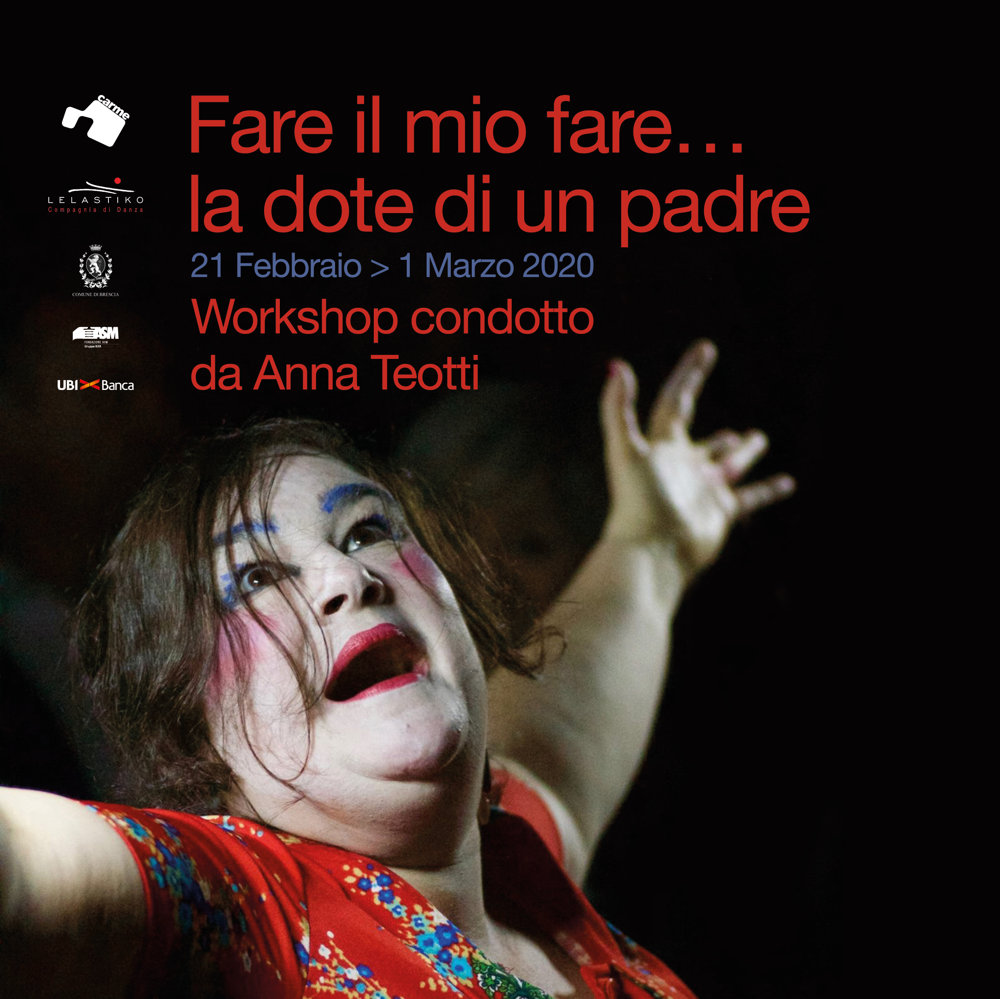 Fare il mio fare…la dote di un padre di Anna Teotti, è il secondo progetto vincitore dell’OPEN CALL Performing Arts, promossa da CARME in b X h area performing arts – II edizione, nel dicembre 2018. Grazie alla guida di Anna Teotti, la Sala dei Santi Filippo e Giacomo diverrà sede di una residenza artistica con performance finale aperta al pubblico.