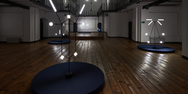 Gli oggetti si illuminano di luce lunare grazie alla presenza di speciali pannelli led e, attraverso congegni meccanici nascosti, danzano nello spazio quasi in assenza di gravità.