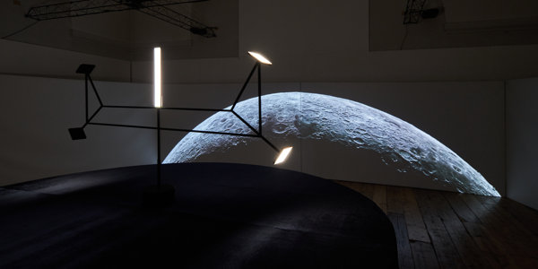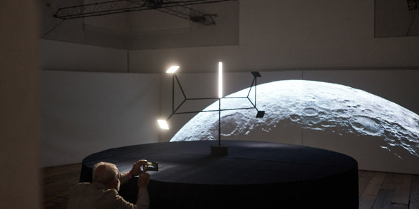 Un anno dopo il 50esimo anniversario dall’allunaggio, Motusorbitas trasporta lo spettatore nello spazio e svela un universo di sculture satelliti in moto orbitale come corpi celesti.