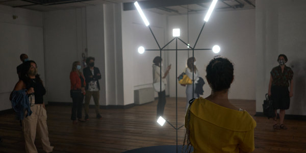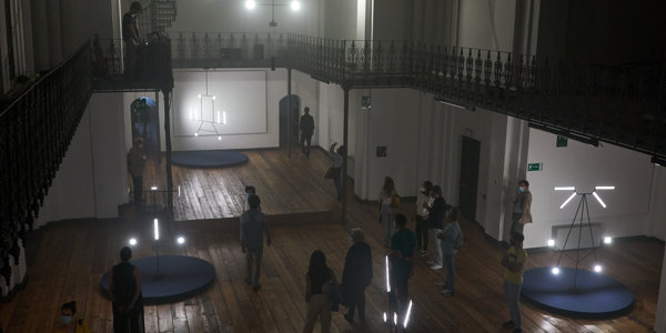 L’opera di Zambelli anima gli spazi seguendo il ritmo architettonico dell’ex-chiesa, legandosi indissolubilmente all’architettura. Punto focale dell’opera è l’invito dello spettatore a fruirne a 360°: luci, segnali luminosi e note musicali animano l’ambiente, creando un’esperienza unica e speciale.