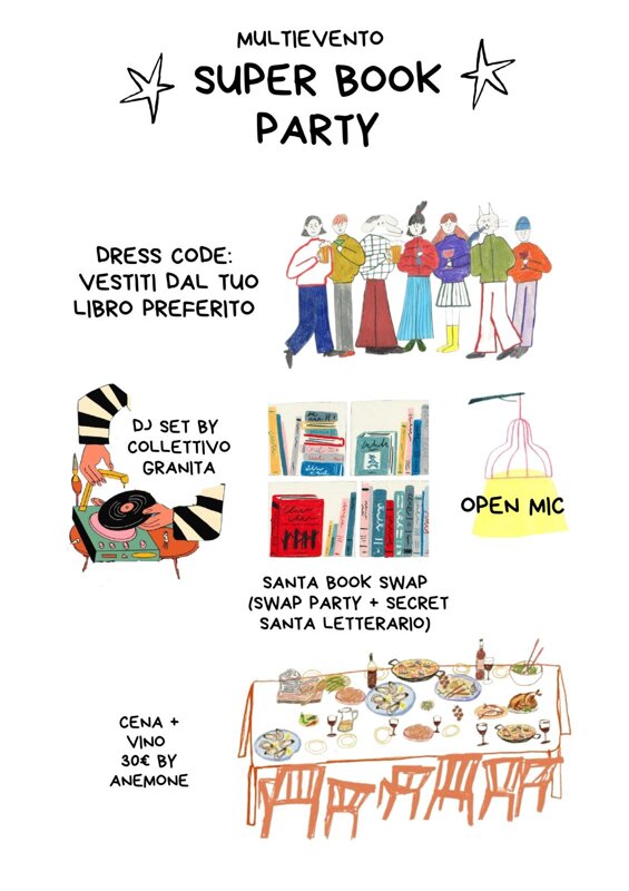 Se vuoi, potrai vestirti come il tuo personaggio preferito: da un eroe dei classici a una figura dei romanzi contemporanei, ogni interpretazione è benvenuta. L’atmosfera sarà animata da momenti di lettura guidati dal Book Club Granyta, alternati al dj set del Collettivo Granita, per un equilibrio perfetto tra parole e musica.